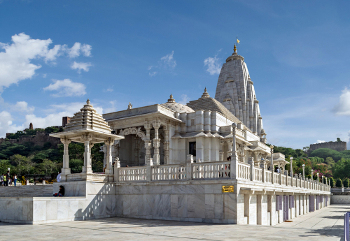 Birla Temple : Birla Temple, also known as the Lakshmi Narayanan Temple, designed in white marble, has a magnificent shrine and beautifully sculpted idols of Lord Vishnu, Goddess Lakshmi and other Hindu Gods and Goddesses. Delicate carvings of Hindu symbols and ancient quotes from the Geeta and the Upanishads adorn the walls of this fascinating temple situated on an elevated ground at the base of Moti Dungri hill.
